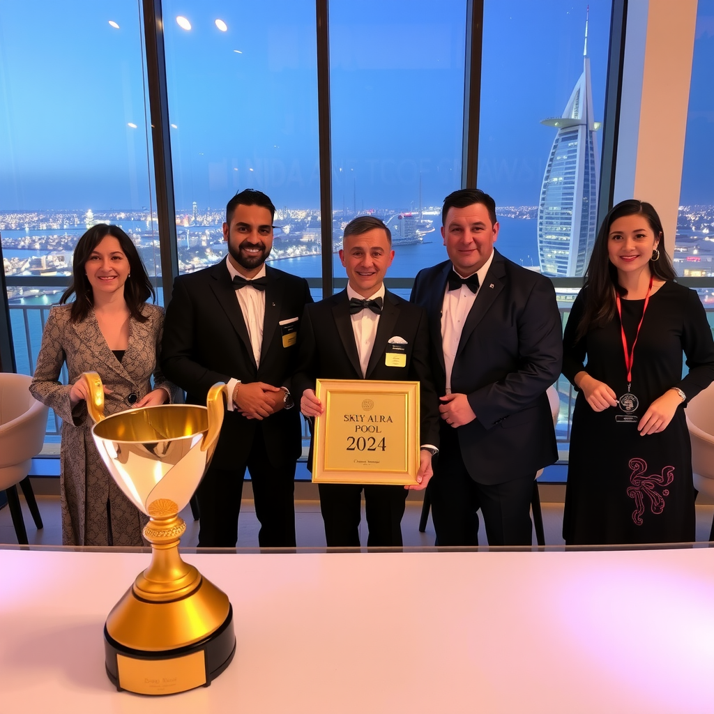 In a glittering ceremony held at the legendary Burj Al Arab, Sky Aura Pool's management team proudly accepted this distinguished accolade alongside other leading hospitality establishments in the region. The recognition marks a significant milestone in our journey to redefine luxury leisure experiences in Dubai's competitive hospitality landscape.